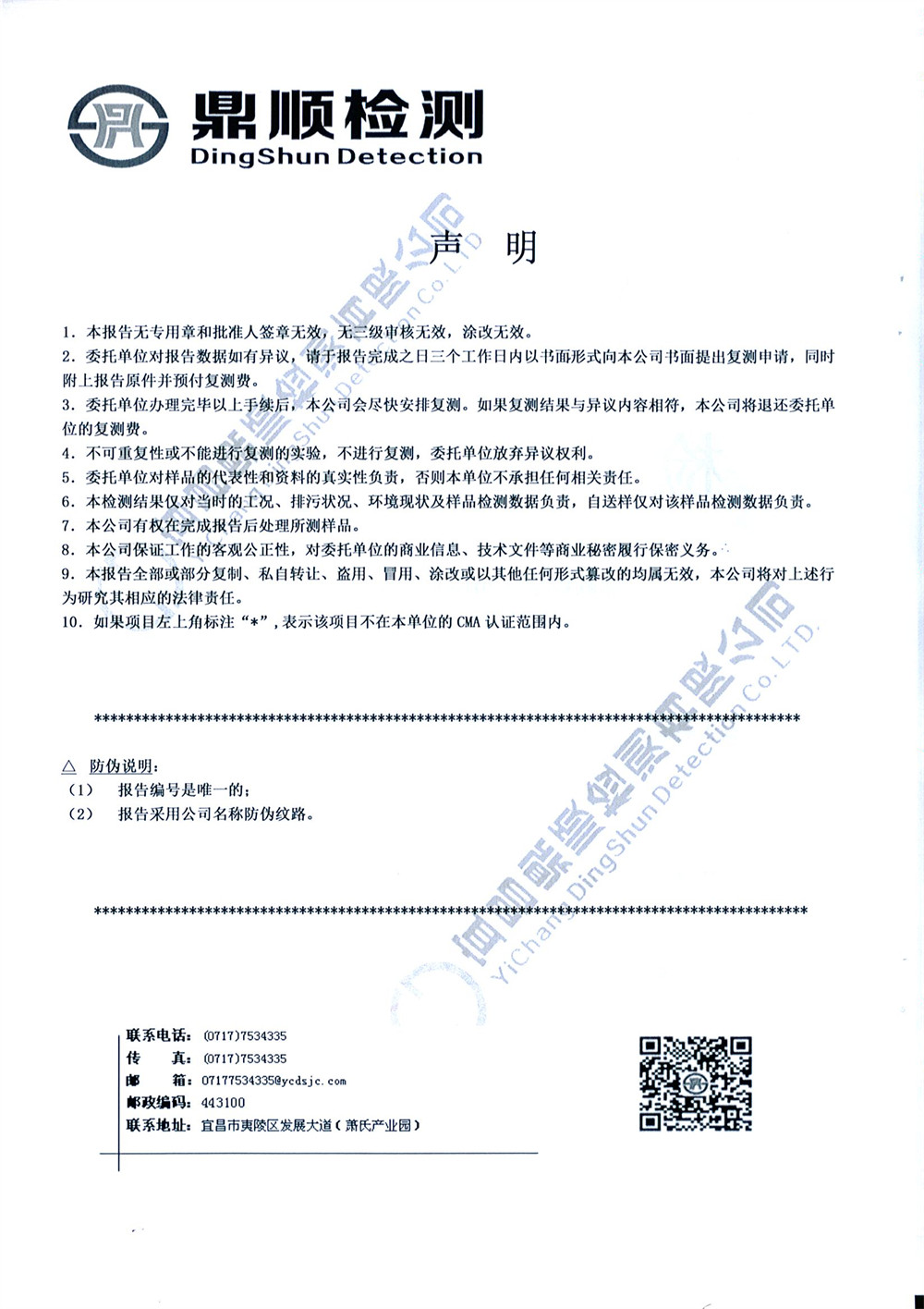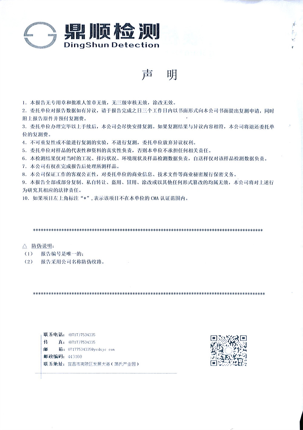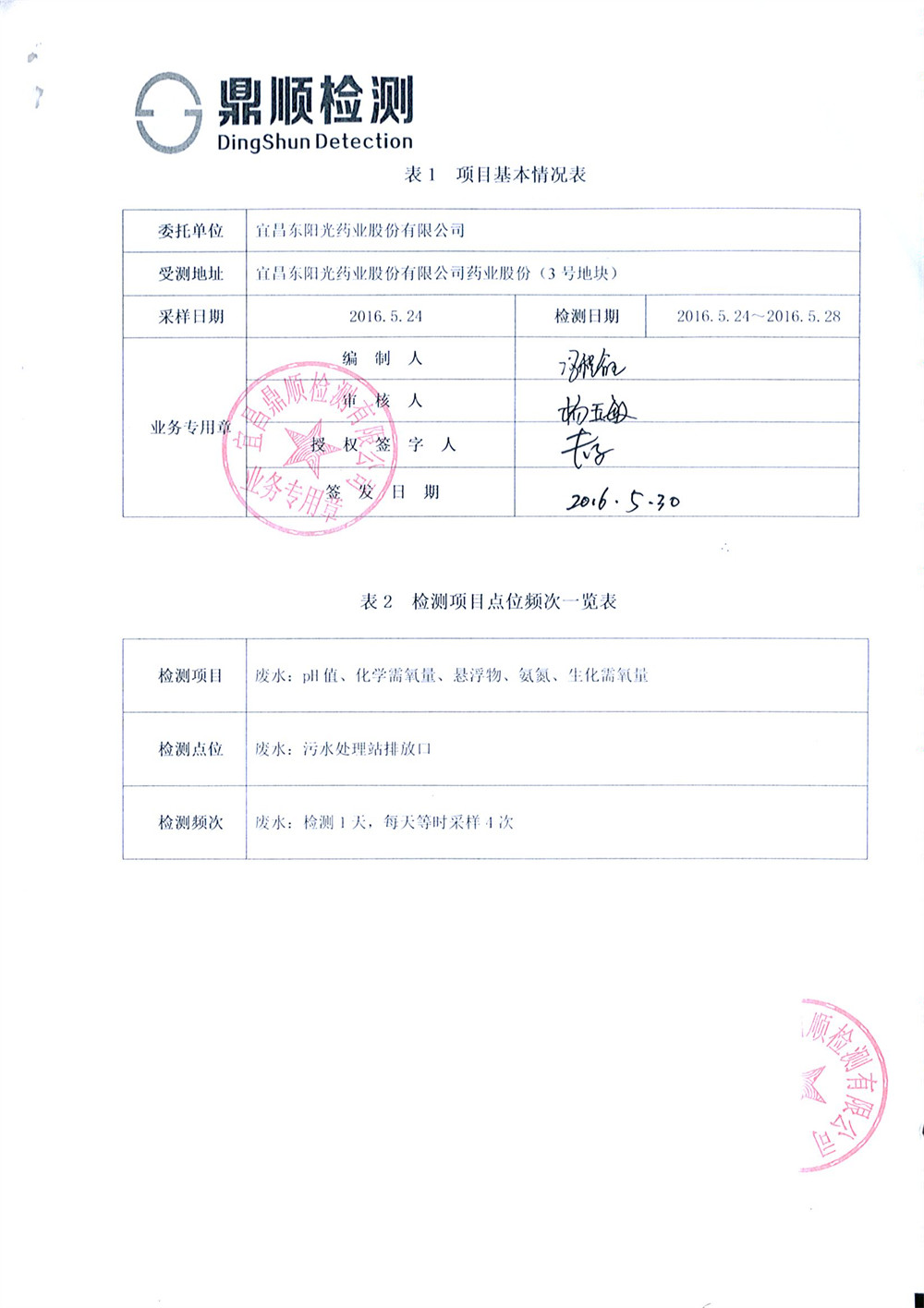 The company entrusted Yichang Dingshun Testing Co., Ltd. to carry out environmental monitoring on the waste water and waste gas of No. 2 and No. 3 sites. According to the monitoring results, both waste water and waste gas of the company were discharged up to the standard. The relevant monitoring report is as follows.