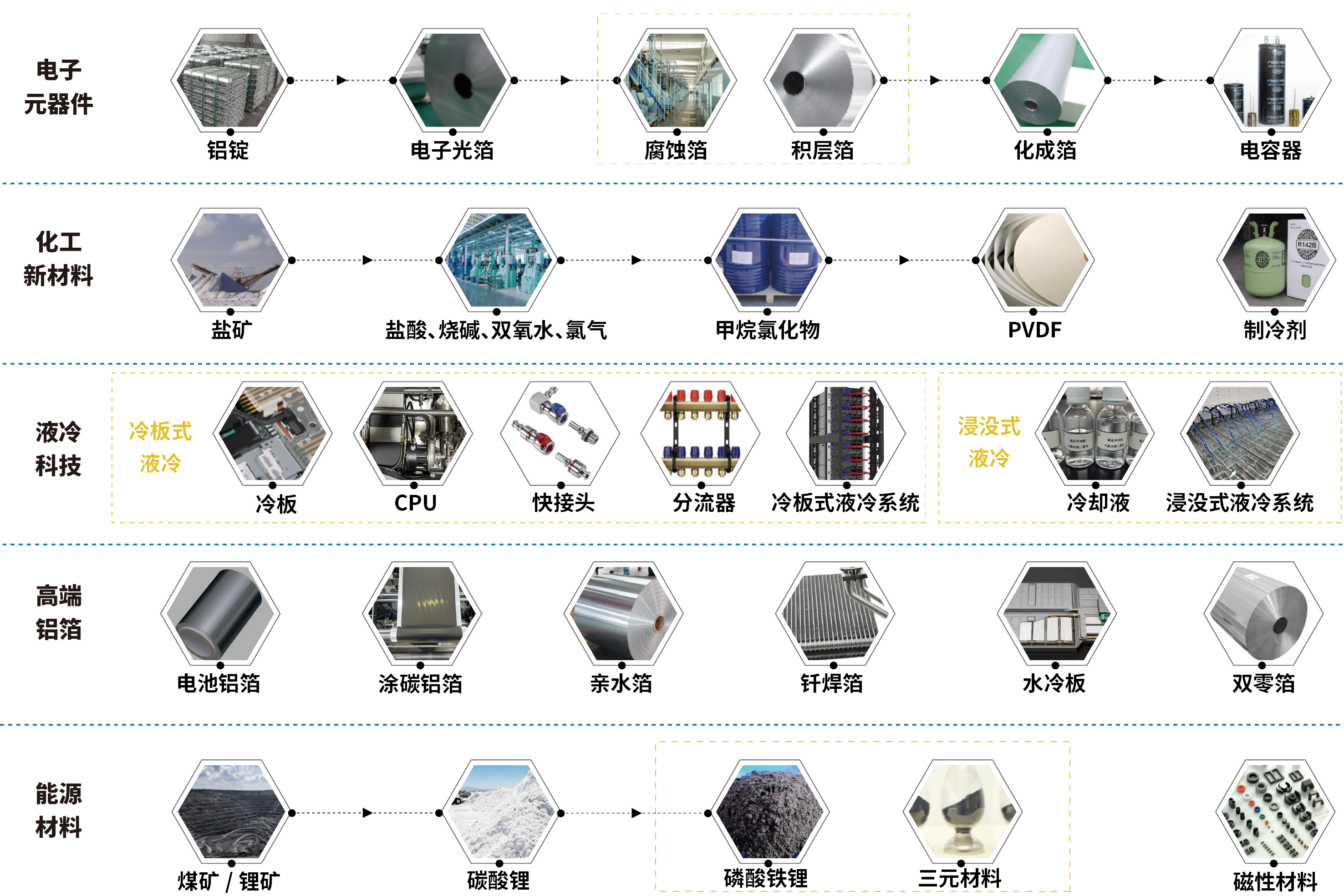 電子新材料行業(yè)已擁有 A 股上市公司東陽(yáng)光 (600673.SH);圍繞電容器產(chǎn)業(yè)鏈和電池材料產(chǎn)業(yè)集群發(fā)展核心產(chǎn)業(yè),已打造電子元器件、高端鋁箔、化工新材料、新能源材料、液冷科技五大產(chǎn)業(yè)集群。憑借完整的產(chǎn)業(yè)鏈及技術(shù)創(chuàng)新優(yōu)勢(shì),積極響應(yīng)國(guó)家“雙碳”政策,緊緊圍繞市場(chǎng)需求,不斷完善產(chǎn)業(yè)布局,力爭(zhēng)在 5-8 年時(shí)間內(nèi)建成國(guó)際先進(jìn)的新能源材料平臺(tái)型公司!