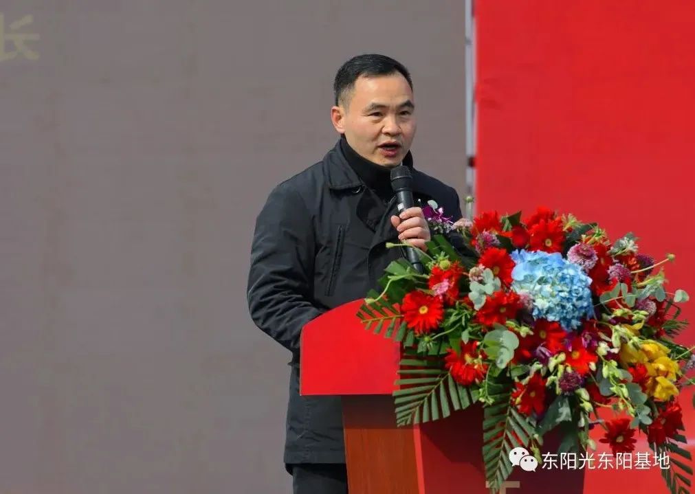 東陽光集團董事長張寓帥先生致辭。他深情表達了對家鄉(xiāng)的熱愛和對東陽光事業(yè)的堅定信心。鋁電解電容器項目是東陽光集團回歸家鄉(xiāng)的第一個重點項目,本項目的開工建設,也標志著東陽光集團第七大基地——東陽基地正式起步。東陽光集團將依托在電子新材料產(chǎn)業(yè)深耕多年的雄厚積累和完整的產(chǎn)業(yè)鏈優(yōu)勢,把東陽基地建成國內(nèi)電子新材料自動化、智能化、信息化、精益化的行業(yè)標桿。