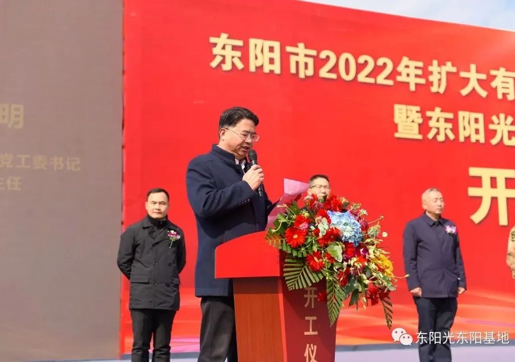 2月21日,東陽市2022年擴大有效投資重大項目集中開工活動暨東陽光鋁電解電容器項目開工儀式在東陽光集團東陽基地電容器項目工地隆重舉行。東陽市委書記樓瑯堅出席活動并宣布項目開工,市委副書記、市長黃勝可主持開工儀式,市委常委、常務副市長陳洪通報集中開工項目總體情況,東陽經(jīng)濟開發(fā)區(qū)黨工委書記、管委會主任黃文明和東陽市交通投資建設集團有限公司總經(jīng)理李亮作表態(tài)發(fā)言,東陽光集團董事長張寓帥參加活動并致辭。