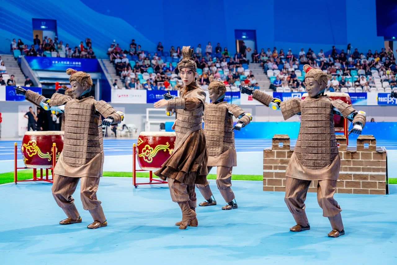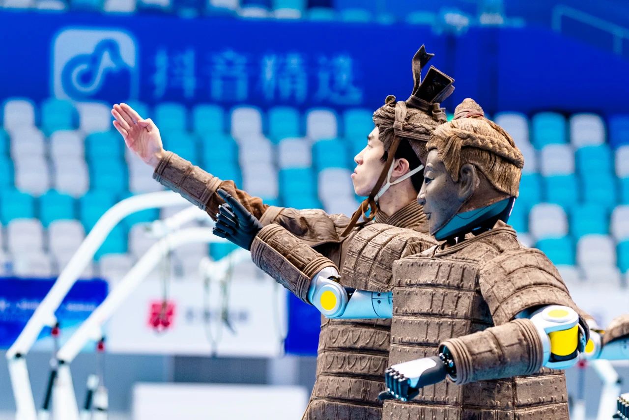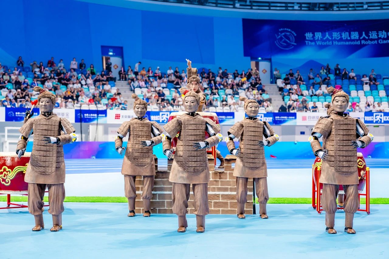 2025年8月14日晚,在“2025世界人形機器人運動會”開幕式上,由光谷東智與北京舞蹈學院聯(lián)合打造的全球首創(chuàng)大型人機共舞節(jié)目《秦俑魂》震撼亮相,中央電視臺《共同關注》欄目對此做了專門報 道。