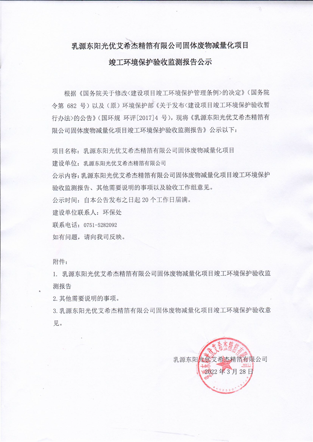 乳源東陽光優(yōu)艾希杰精箔有限公司固廢減量化項目竣工環(huán)保驗(yàn)收監(jiān)測公示
