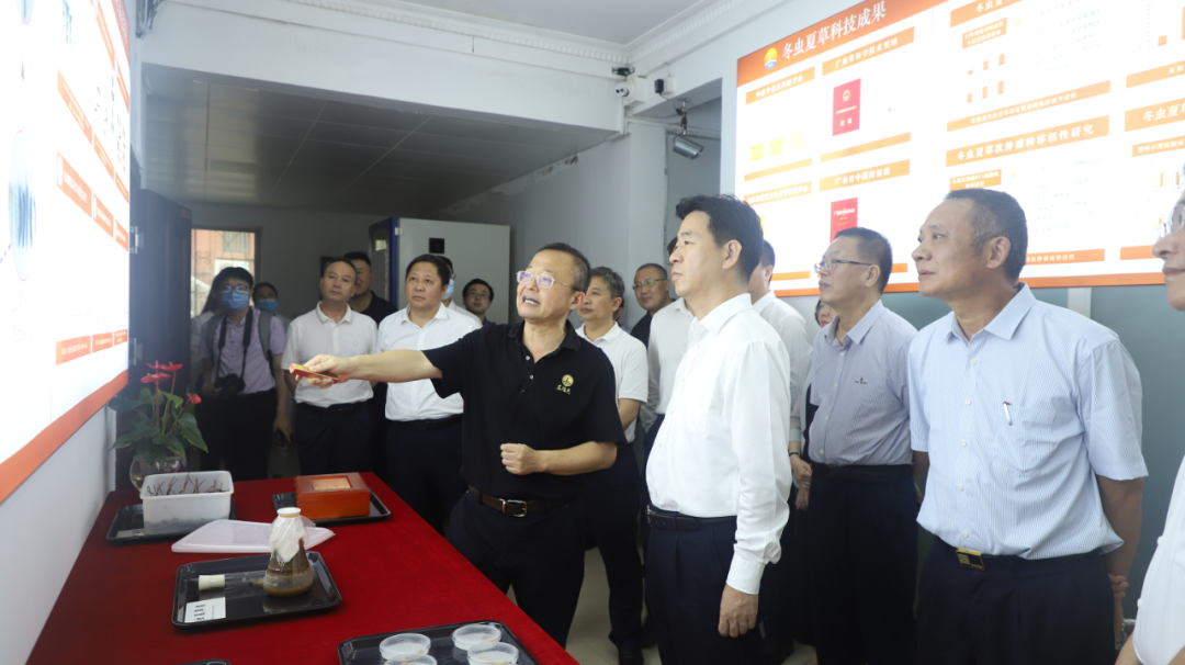 考察期間,陳少榮書記一行參觀了東陽(yáng)光集團(tuán)研究院研發(fā)大樓、蟲草展廳。