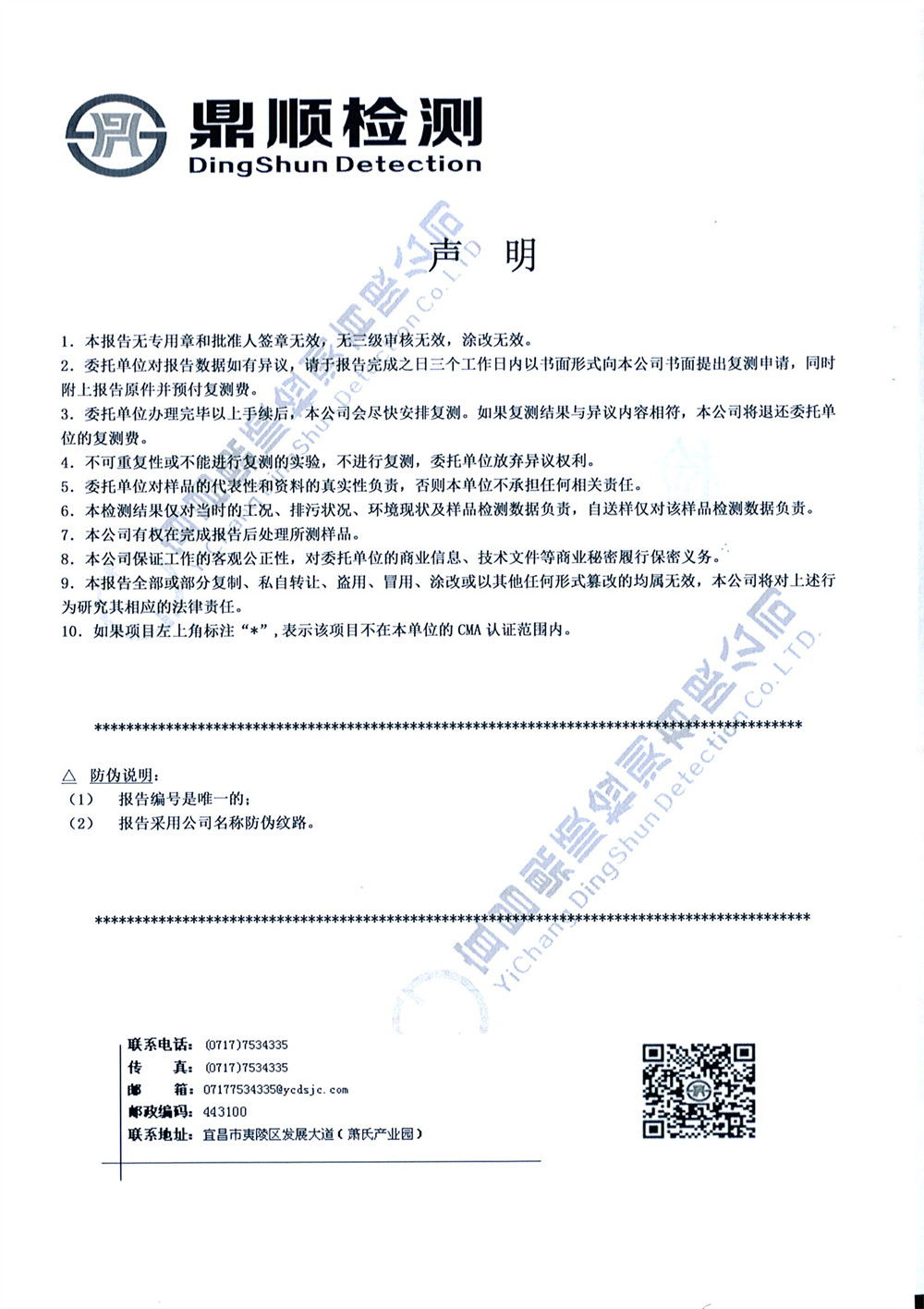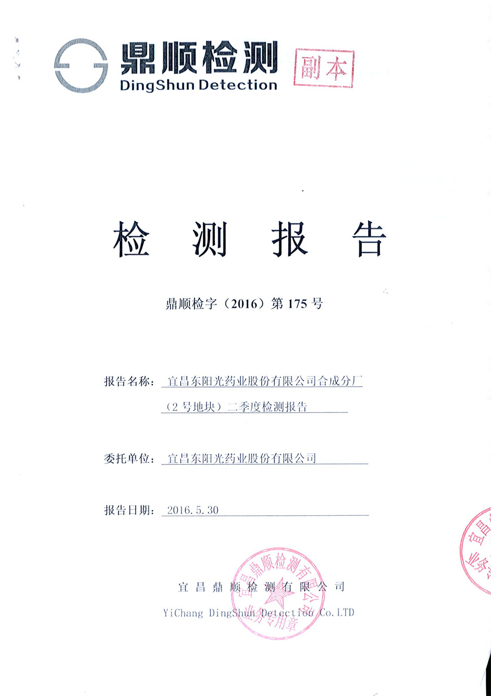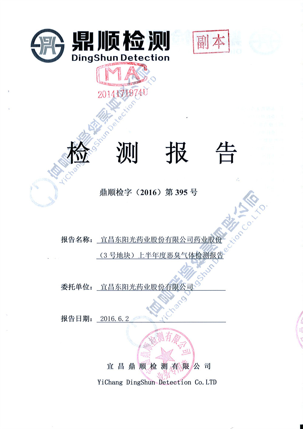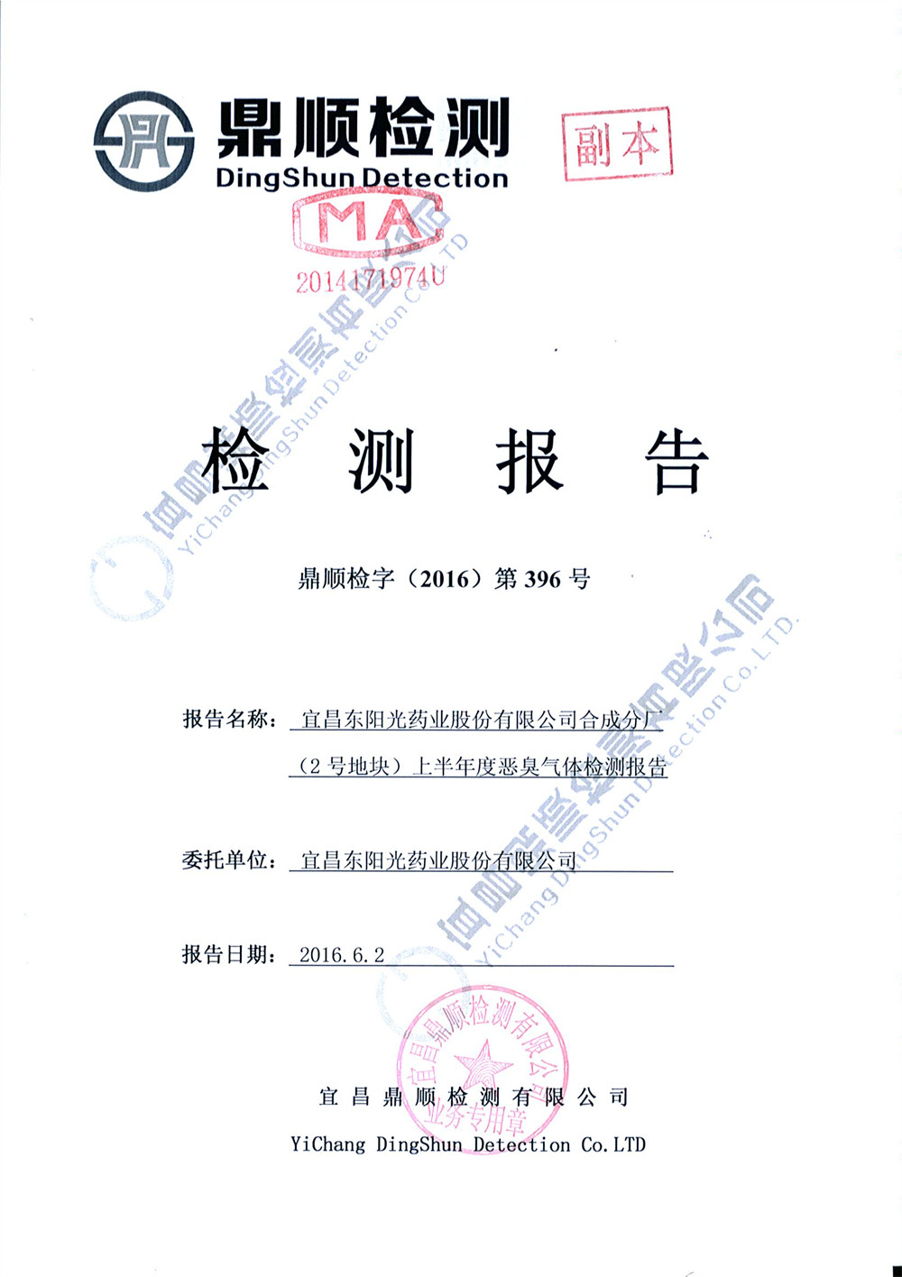 The company entrusted Yichang Dingshun Testing Co., Ltd. to carry out environmental monitoring on the waste water and waste gas of No. 2 and No. 3 sites. According to the monitoring results, both waste water and waste gas of the company were discharged up to the standard. The relevant monitoring report is as follows.