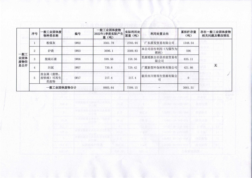 Information disclosure of solid waste environmental pollution prevention and control in the first quarter of 2022 by solid key companies (electrochemical plants, fluorine limited, refined foil)