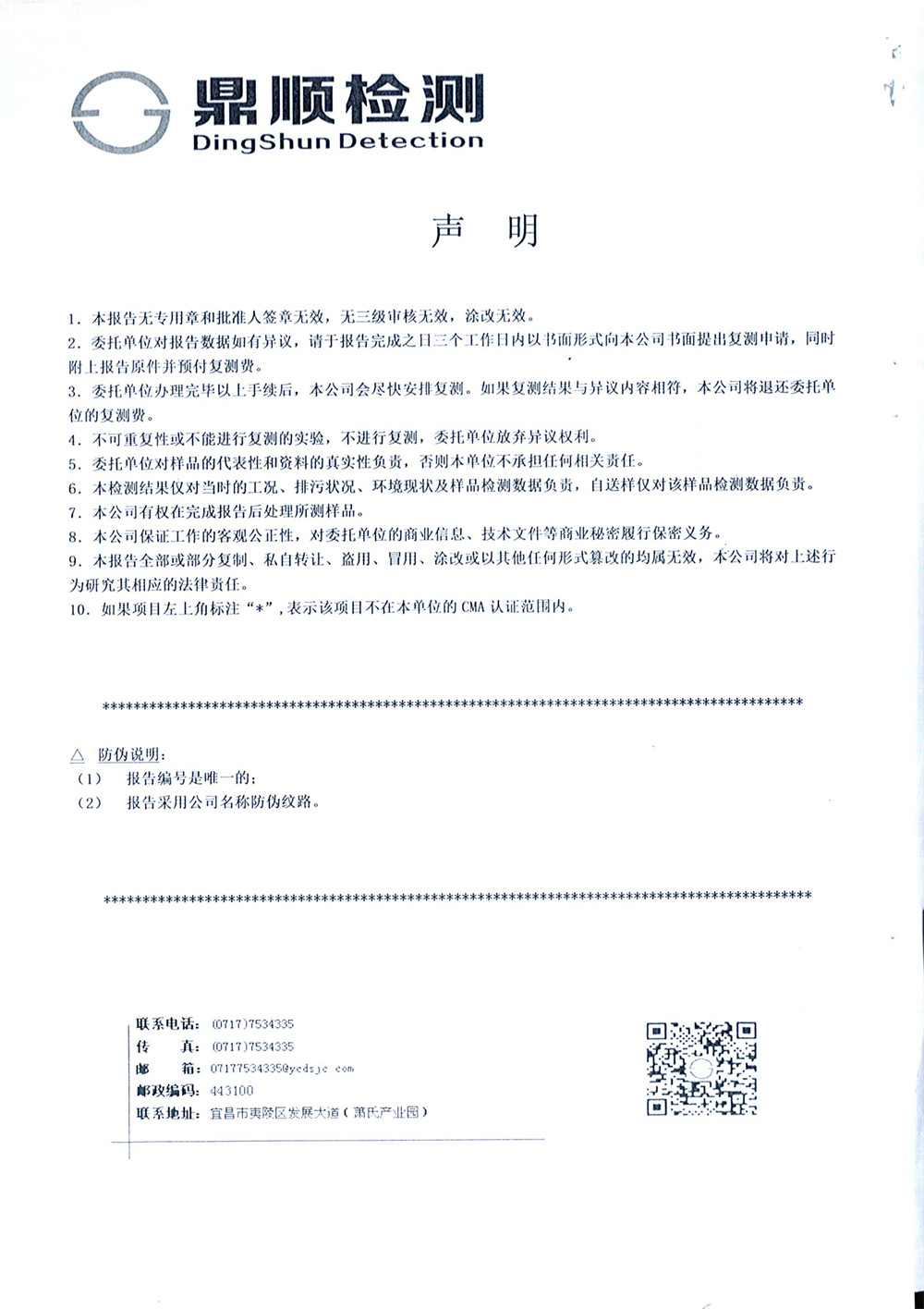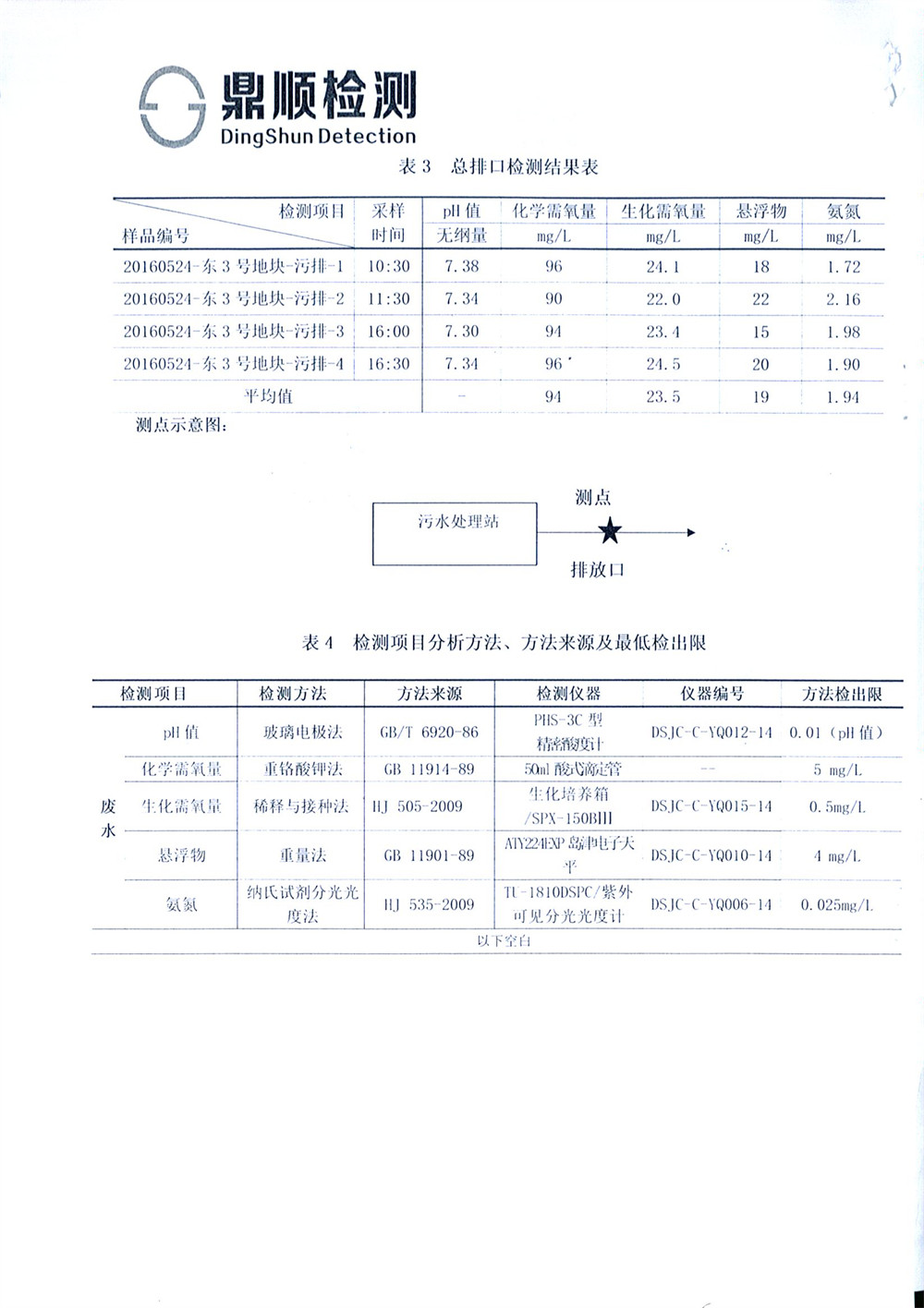 公司委托宜昌鼎順檢測有限公司對2號地、3號地廢水、廢氣開展了環(huán)境監(jiān)測,根據(jù)監(jiān)測結(jié)果,公司兩處廢水、廢氣均達標排放,相關監(jiān)測報告如下。