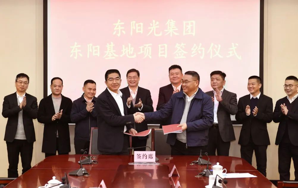 4月1日,東陽光集團(tuán)與東陽市政府在東陽市簽訂戰(zhàn)略合作協(xié)議。雙方就進(jìn)一步擴(kuò)大投資,高質(zhì)量、高效益建設(shè)東陽基地達(dá)成合作,全面提升戰(zhàn)略合作高度。東陽市市委書記樓瑯堅(jiān)、市長黃勝可及各有關(guān)單位負(fù)責(zé)人,東陽光集團(tuán)董事長張?jiān)洝⒍聲喼抵飨R宇新、董事朱英偉等出席簽約儀式。